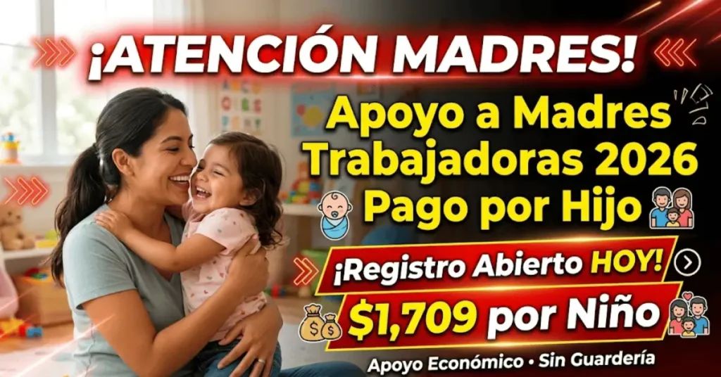 El Apoyo a Madres Trabajadoras 2026 del Gobierno de México brinda subsidio económico por hijo a mujeres en México para facilitar el cuidado infantil.